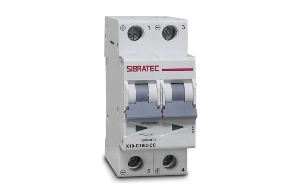 DISJUNTOR DIN CORRENTE CONTINUA BIPOLAR X10-16/2-CC 16A 10KA 800VCC FOTOVOLTAICO SIBRATEC
