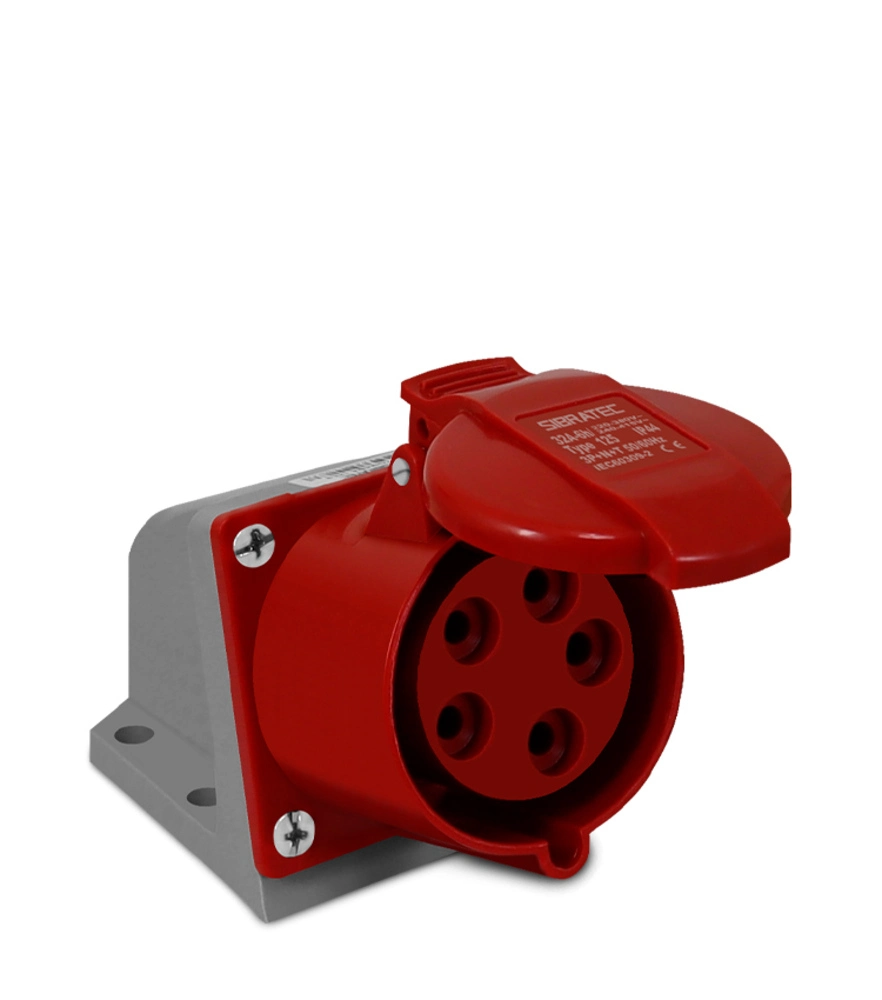 TOMADA INDUSTRIAL SOBREPOR/PAREDEIP44 3P+T+N 32A 6H 380VCA MODELO 125 SIBRATEC