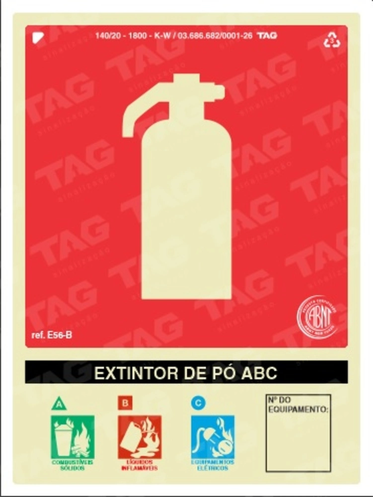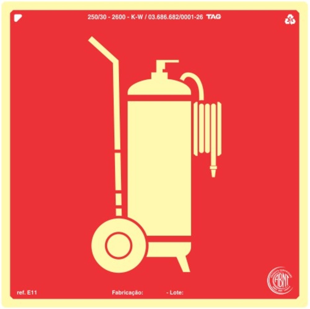 PLACA SINALIZAÇÃO FOTOLUMIN. EXTINTOR TIPO CARRETA - 20X20CM PVC EXP. 2MM TAG