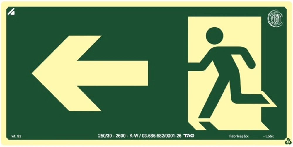 PLACA SINALIZAÇÃO FOTOLUMIN. ROTA DE FUGA A ESQUERDA - 12X24CM PVC EXP. 2MM TAG