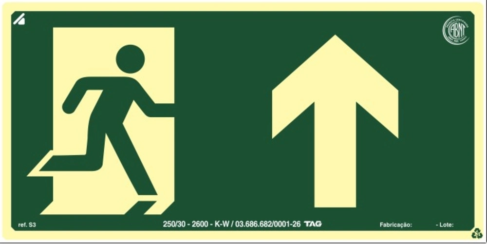 PLACA SINALIZAÇÃO FOTOLUMIN. ROTA DE FUGA A FRENTE - 15X30CM PVC EXP. 2MM TAG