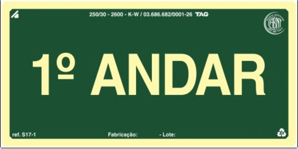 PLACA SINALIZAÇÃO FOTOLUMIN. PAVIMENTO 1º ANDAR - 10X20CM PVC 2MM TAG