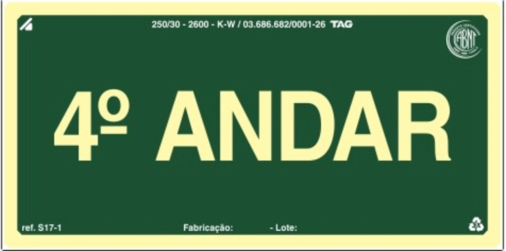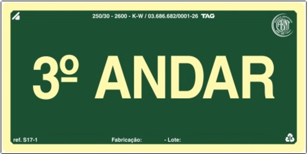 PLACA SINALIZAÇÃO FOTOLUMIN. PAVIMENTO 3º ANDAR - 10X20CM PVC 2MM TAG