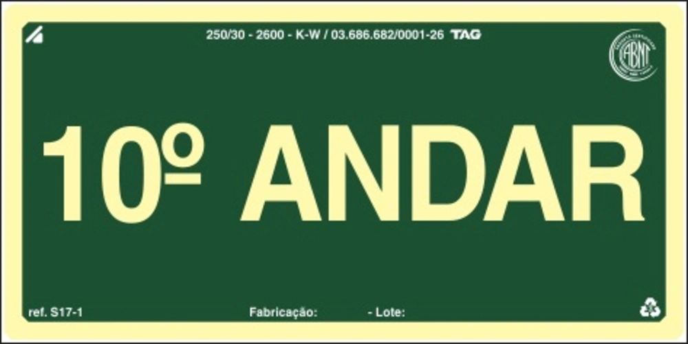 PLACA SINALIZAÇÃO FOTOLUMIN. PAVIMENTO 10º ANDAR - 10X20CM PVC 2MM TAG