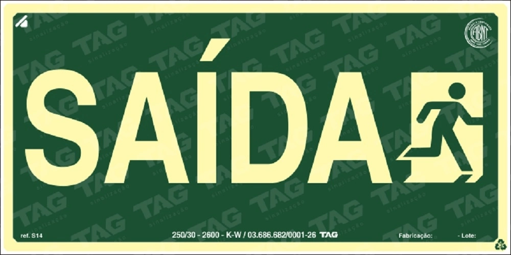 PLACA SINALIZAÇÃO FOTOLUMIN. PICTOGRAMA SAIDA A DIREITA - 15x30CM PVC 2MM TAG