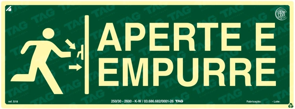 PLACA SINALIZAÇÃO FOTOLUMIN. APERTE E EMPURRE - 12X24CM PVC 2MM TAG