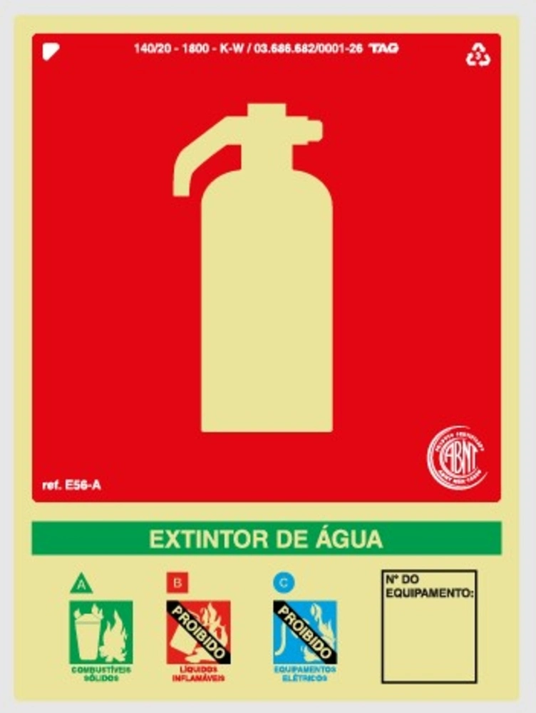 PLACA SINALIZAÇÃO FOTOLUMIN. EXTINTOR DE AGUA - 15X20CM PVC 2MM TAG