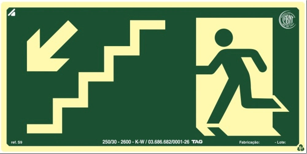 PLACA SINALIZAÇÃO FOTOLUMIN. ESCADA SOBE A ESQUERDA - 15X30CM PVC EXP. 2MM TAG