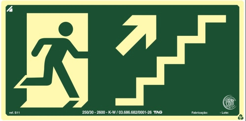 PLACA SINALIZAÇÃO FOTOLUMIN. ESCADA SOBE A DIREITA - 15X30CM PVC EXP. 2MM TAG