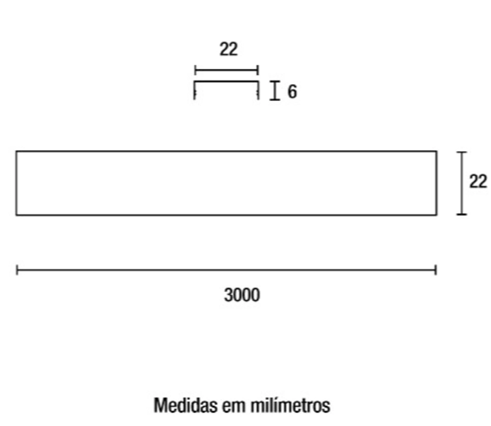 Dimensões (MM): 3000,00 x 6,00 x 22,00 (Comp. x Alt. x Larg.)