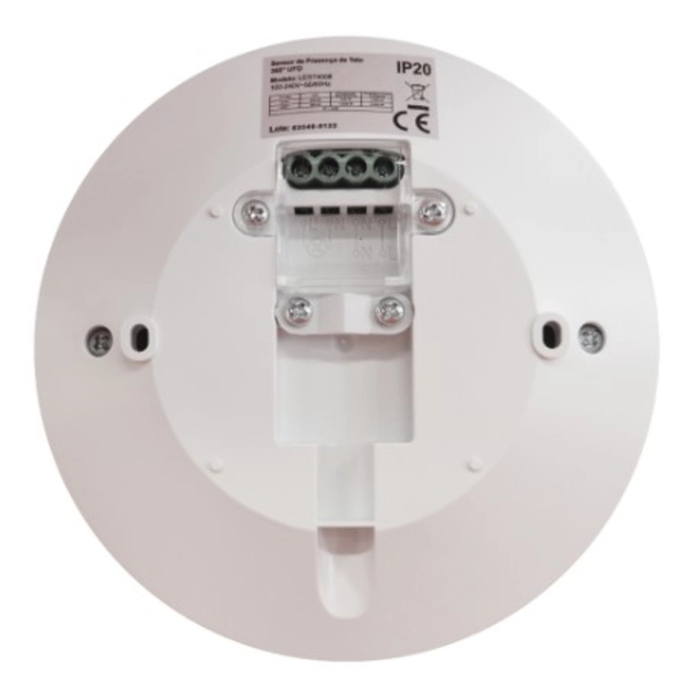 Cobertura: Produto possui lente com cobertura 360°, quando instalado na altura de 6 m abrange alcance de até 20 m em temperatura ambiente de 25ºC.
