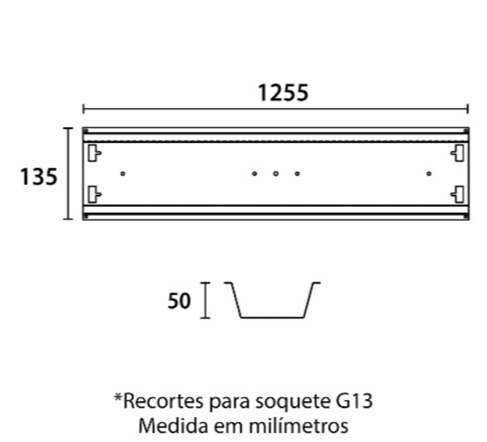 Dimensões (MM): 1255.00 x 50.00 x 135.00 (Comp. x Alt. x Larg.)