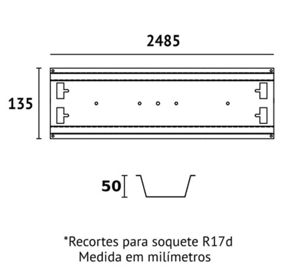 Dimensões (MM): 2485.00 x 50.00 x 135.00 (Comp. x Alt. x Larg.)