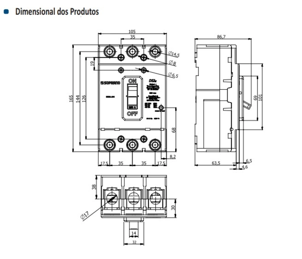 Conectores para cabos (incluso) lado carga/linha: 1x185;