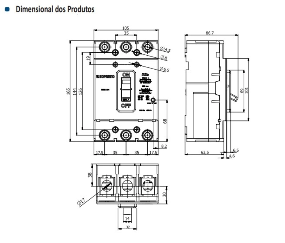 Conectores para cabos (incluso) lado carga/linha: 1x185;