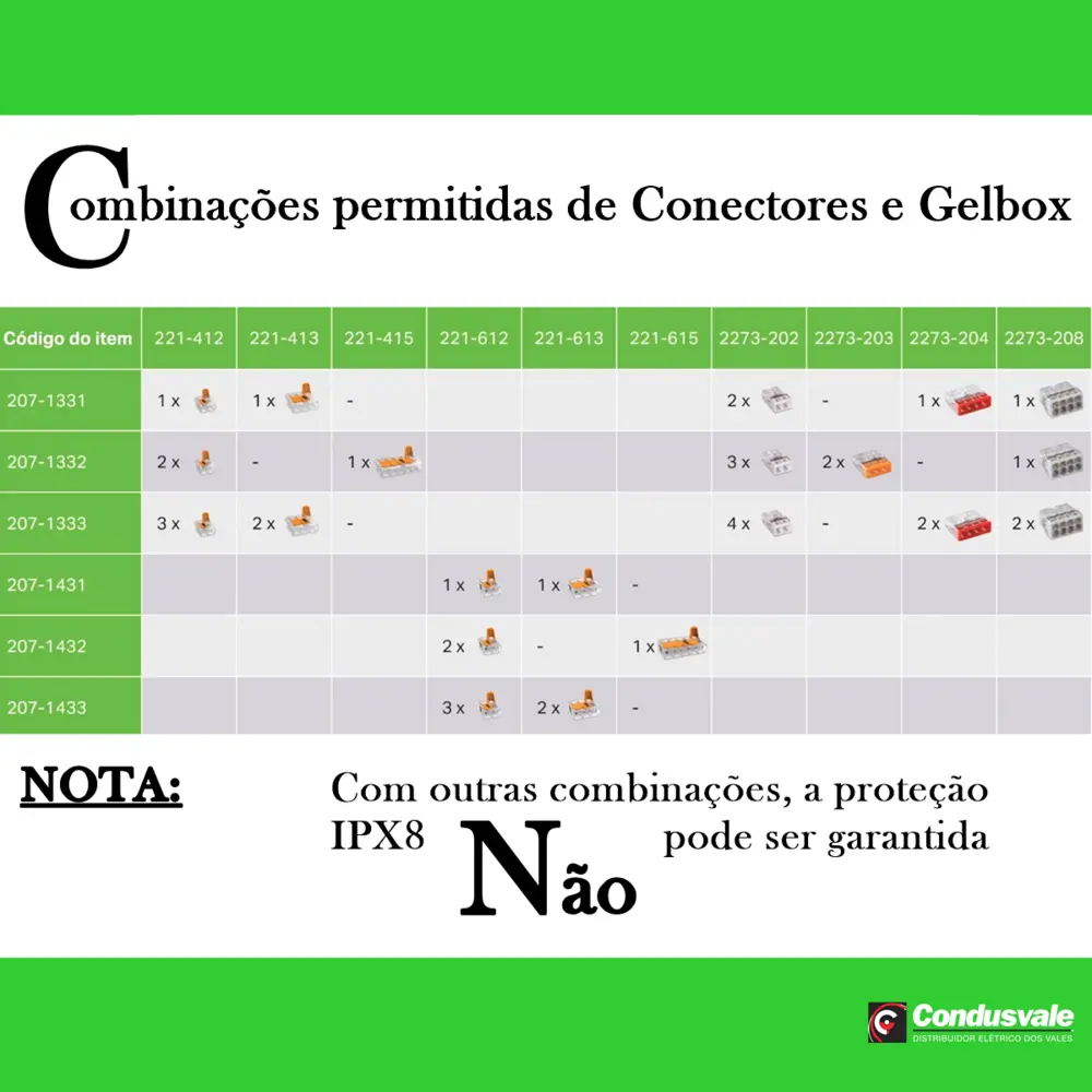 Este modelo 207-1332 TIPO 2 Suporta um conector wago 221 de 3.4 ou 5 vias ou dois conectores de duas vias até 4mm.