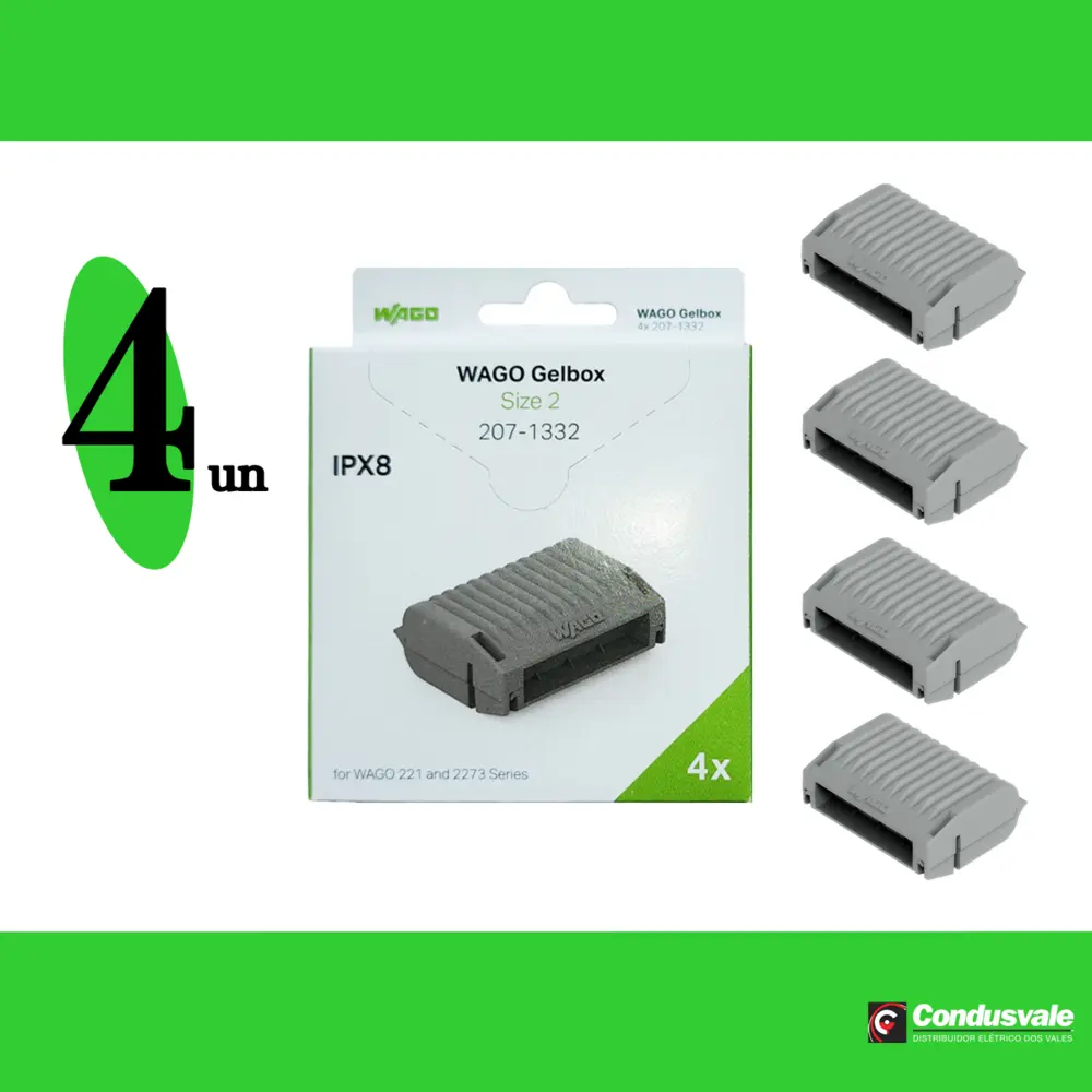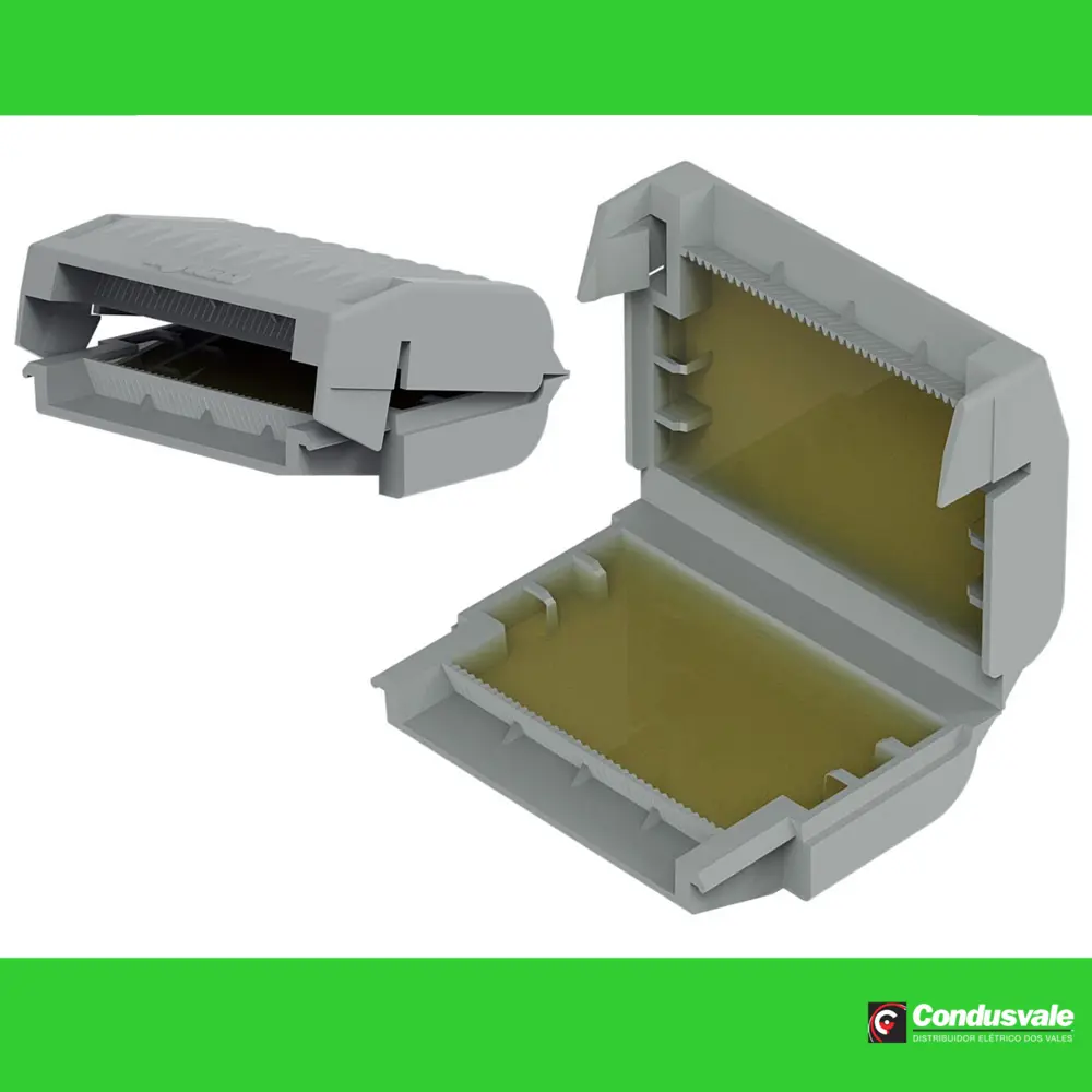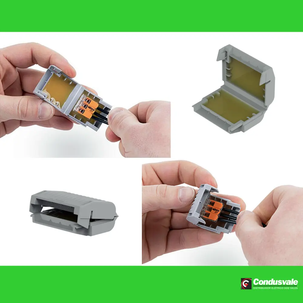 A Gelbox é uma solução inovadora e eficiente para a proteção de conexões de cabos, especialmente projetada para aplicações que envolvem ramificações. Este produto é compatível com as linhas 221 e 2x73 de conectores, suportando cabos com espessura máxima de 4 mm².