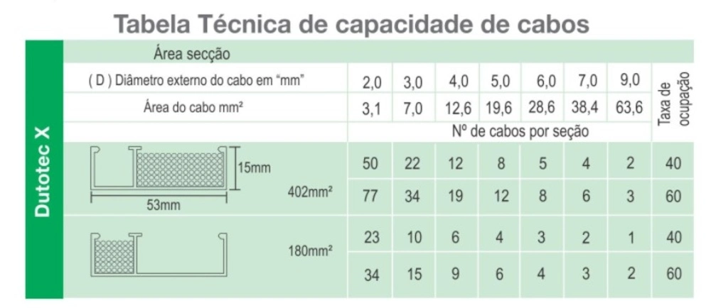 Dimensões da canaleta com tampa: 53x 15mm.