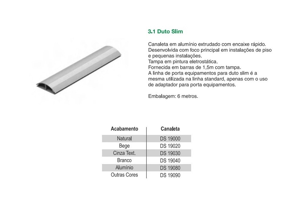 Canaleta em alumínio extrudado com encaixe rápido.