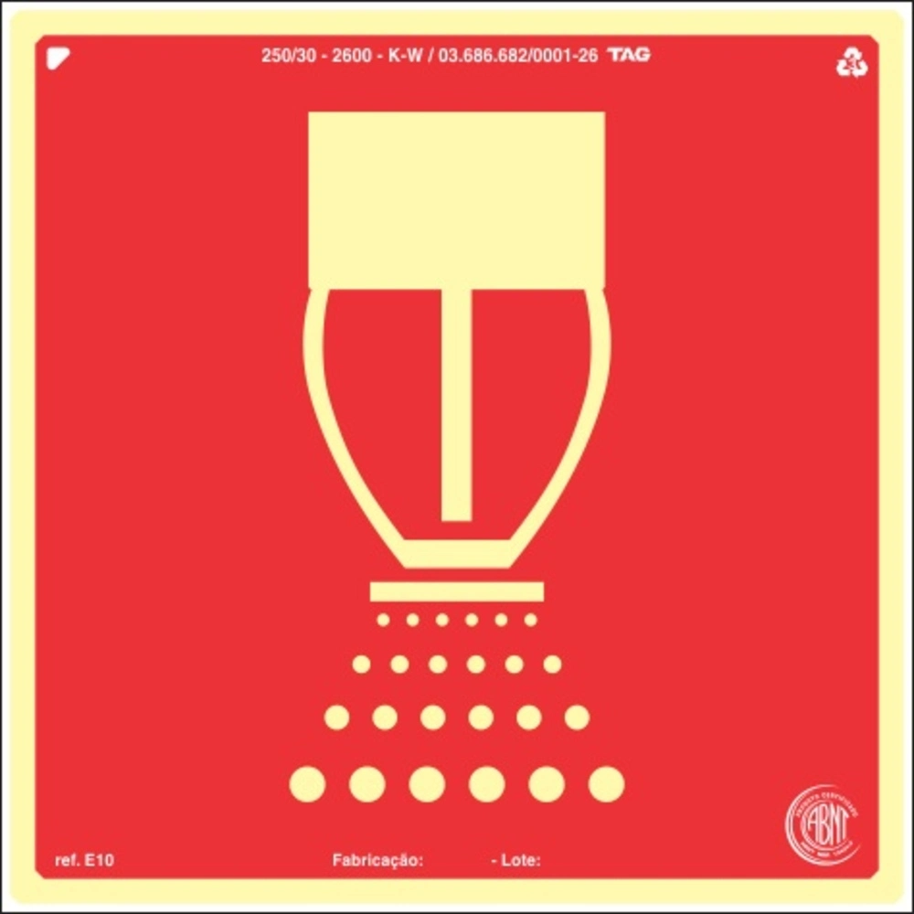 PLACA SINALIZAÇÃO FOTOLUMIN. DE CHUVEIROS AUTOMATICOS - 20X20CM PVC EXP. 2MM TAG