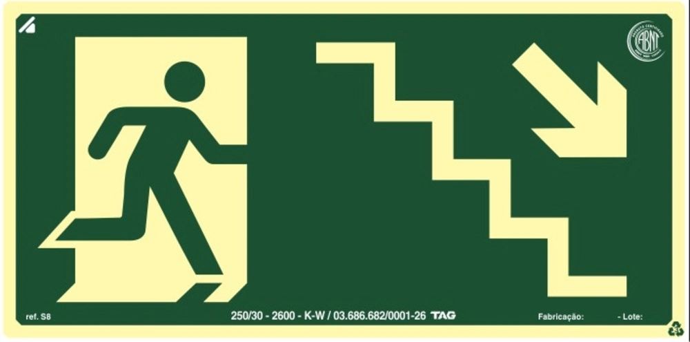 PLACA SINALIZAÇÃO FOTOLUMIN. ESCADA DESCE A DIREITA - 15X30CM PVC EXP. 2MM TAG