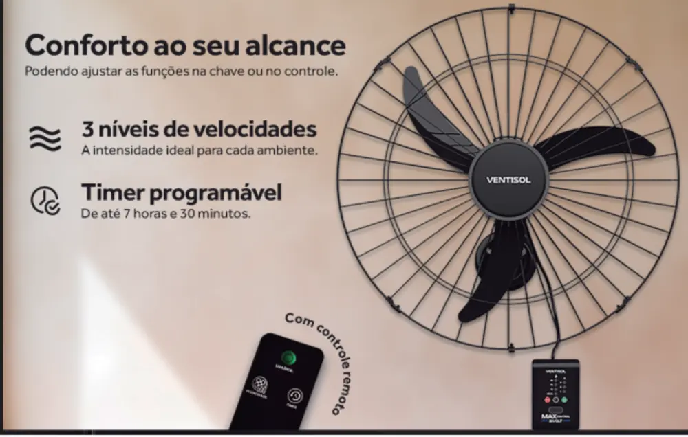 VENTILADOR OSC PAREDE MAX CONTROL 60CM PR MOTOR 200W BIVOLT VENTISOL